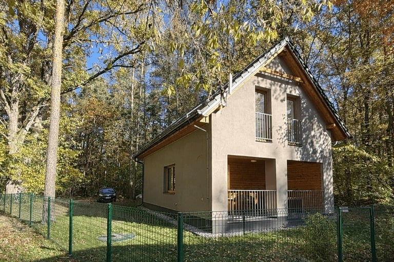 Zcela nový dům obklopen nádherným lesem plným borůvek a hub. Klid a přírodu ocení děti i dospělí.Příjezd po udržované lesní cestě. Oploceno - vlastní pozemek.